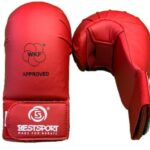 BestSport karate sparring gloves are WKF approved. The gloves have an anatomical shape with a very comfortable bend and increased volume, comfortably fit the fist. Take into account the structural features of the hand. Attached to the wrist thanks to the wide elastic band with Velcro fastening. There are also elastic mounts in the middle of the palm and two loops made of high-quality and durable elastic, each for 2 fingers. This solution avoids rapid deformation and wear of the rubber band. Inner filler – elastic and lightweight molded foam, provides safety on contact, absorbing shock. The density of the filler gives lightness to the overlay. The outer layer is sewn of artificial leather covered with polyurethane. The gloves have good strength, moisture resistance and wear resistance even with active use.