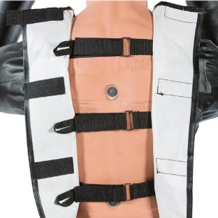 - The jacket wraps snugly around BOB and closes in the back, first with straps and then with hook-and-loop tabs for a more covered closure